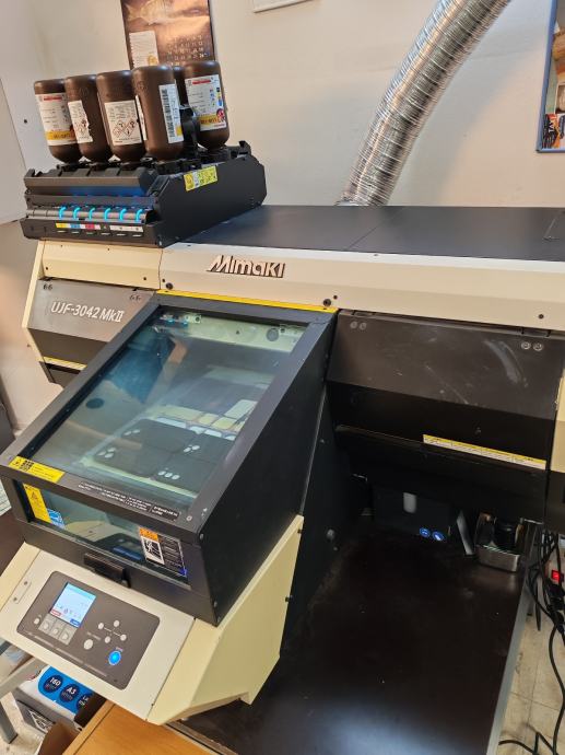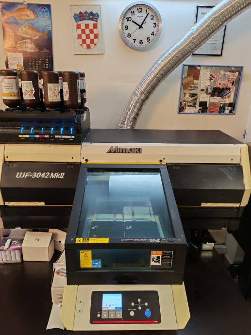 Prodajem UV-led printer vrhunskog branda Mimaki. Površina ispisa 30x42cm. Printer tiska na više vrsta materijala (plastika, kamen, drvo, plexi, staklo...) Idealan za tiskanje suvenira i poslovnih poklona. Održavan uredno cijelo vrijeme kod ovlaštenog servisera. Korišteni svi original dijelovi uključujući boje (LUS-120, cmyk+dvije bijele) i tekućine za čišćenje. Printer je u radu svakodnevno