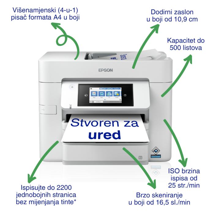 Proširite svoje potencijale ovim višenamjenskim tintnim pisačem za format A4. Nudi visokokvalitetan, povoljan ispis i fleksibilna bežična rješenja.