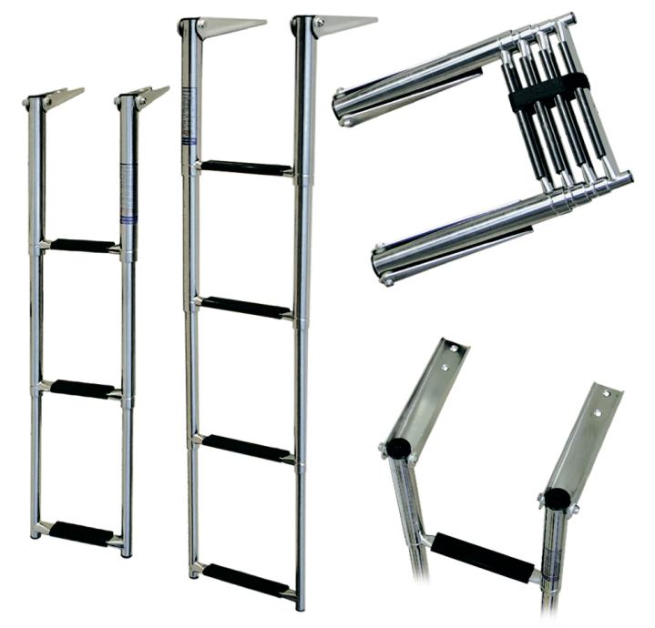 Teleskopske platforme ljestve “SPIRIT” model izrađen od INOX ČELIKA AISI 316 sjajno zrcalno. Stepenice presvučene gumom protiv klizanja.