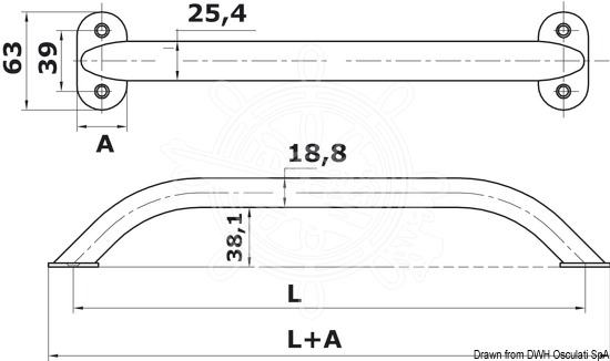 Brodski rukohvat ovalni inox-vijci izvana 600mm od sjajnog inoxa - 265,00 kn