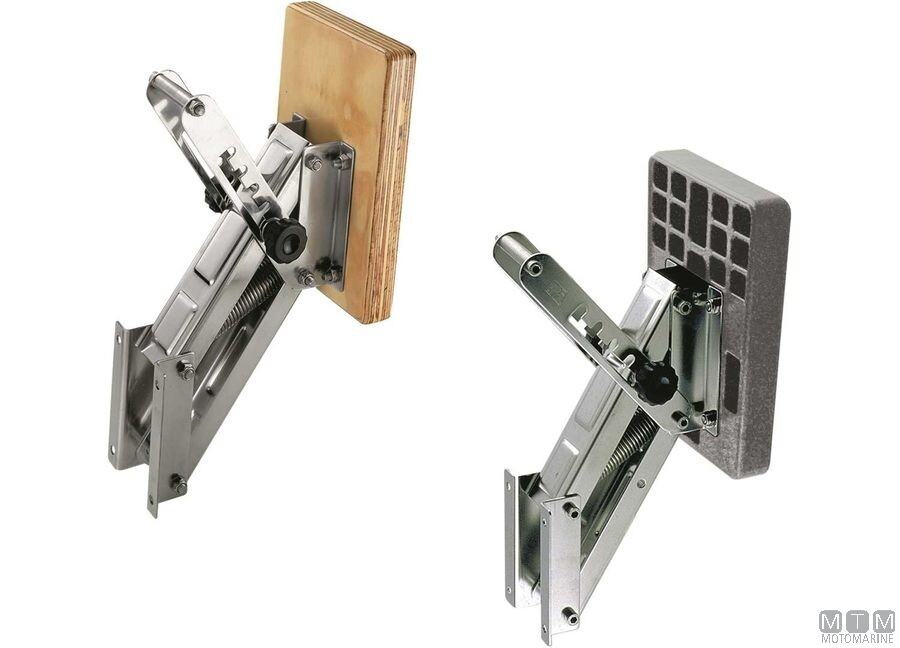 Podesivi nosač za vanbrodski motor na oprugu. Za motore do 15KS (2T) ili 8KS (4T). Tijelo od Nehrđajućeg Čelika.