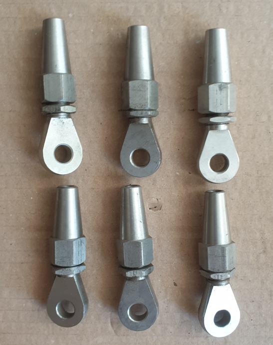 Prodajem 6 novih, nekorištenih okastih terminala za sajlu promjera 6 mm.