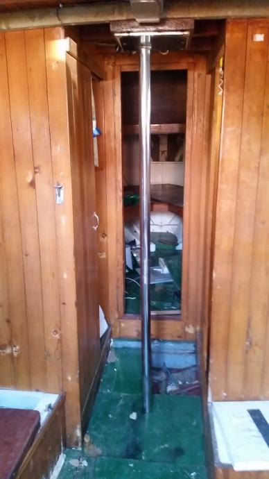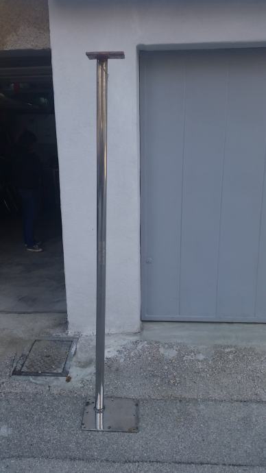 Upora za jarbol, od stropa kabine do kobilice, inox. Visina 187,5 cm, dimenzije baze 31x20 cm.