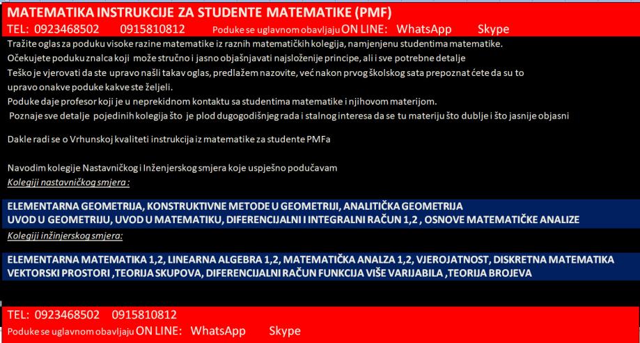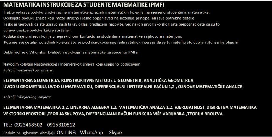 MATEMATIKA INSTRUKCIJE ZA STUDENTE MATEMATIKE (PMF)