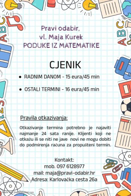 Obrt za poduke iz matematike za osnovnu i srednju školu, te za fakultete.