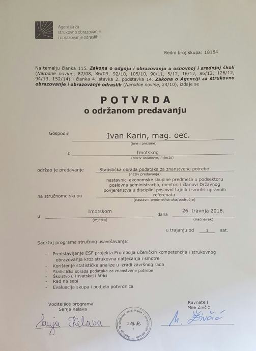 - Obrada podataka, Statističar Ivan Karin, mag. oec.