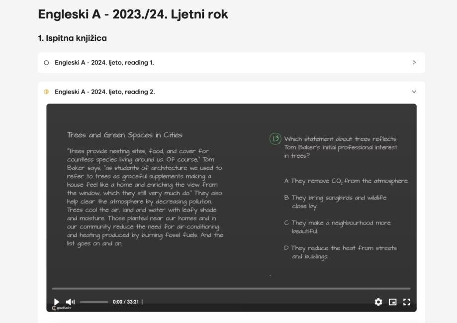 Online pripreme za maturu na gradivo.hr obuhvaćaju: