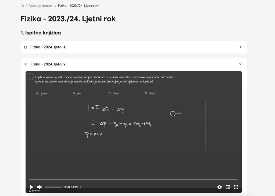 Otkrij jedine pripreme za maturu dostupne bilo kada i bilo gdje! Broj pregleda i premotavanja je neograničen, a materijala ima na stotine sati. Pronađi videorješenja zadataka, videolekcije, skripte, zbirke i još mnogo toga. Plaća se samo jednom, a pristup traje do kraja rokova.