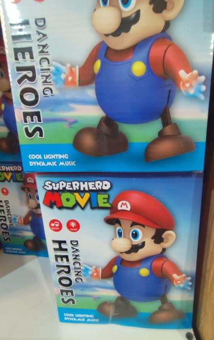 Plešući Super Mario - omiljeni junak svih generacija pleše uz zarazne melodije,svjetla trepere,a zvukovi donose dodatnu dozu zabave.Njegova prepoznatljiva crvena kapa i plavi kombinezon odmah ga čine prepoznatljivim i omiljenim među fanovima svih uzrasta.