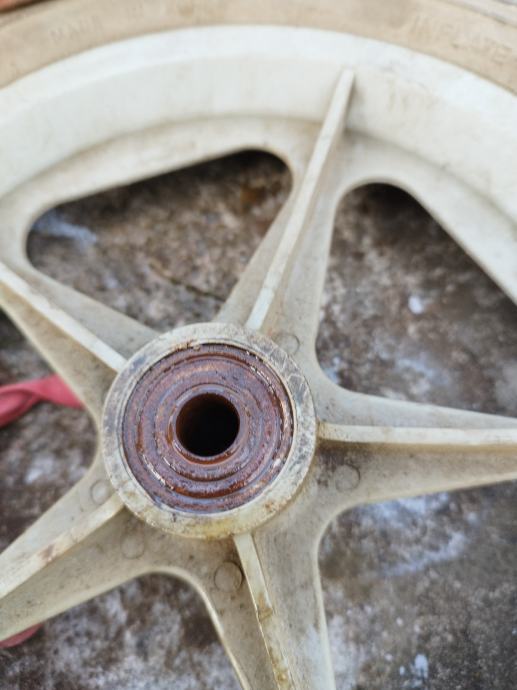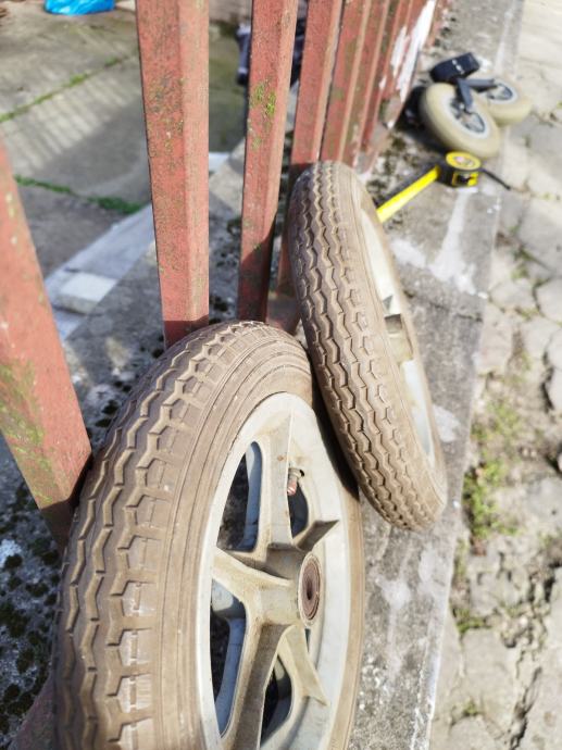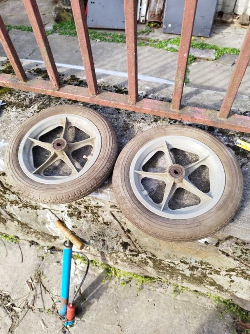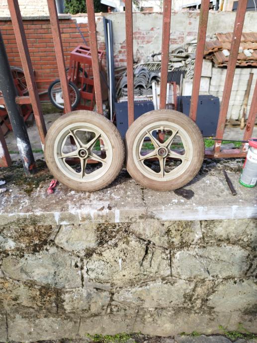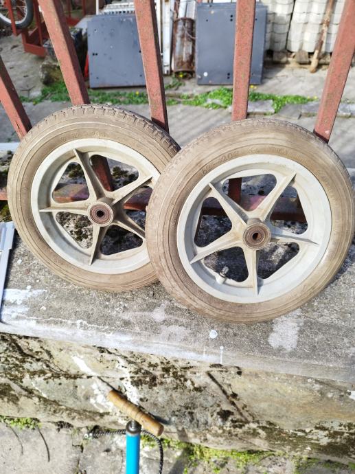 Nutarnja osovina na ležaju 11mm ,promjer točka je 30 cma a širina točka 53 mm.Točkovi su ispravni i u originalnom stanju.Šaljem poštom uplatom na moj tekući račun+troškovi poštarine.cijena je za par.