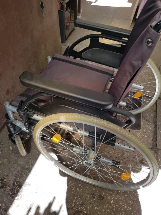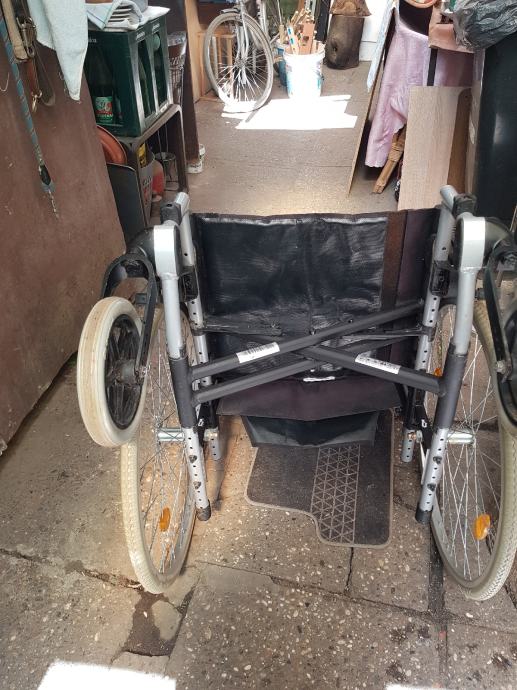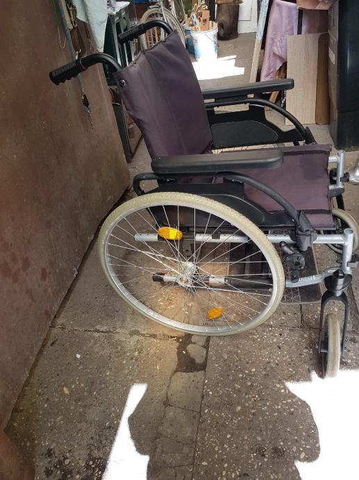 Kolica dajemo jeftinije samo zato sto nema oslonac za noge i obruc ako se sama isoba vozi da rukom okrece kotac inace sve drugo uredu sjedište 45 cm nosivost 130kg.Kolica sklopiva.