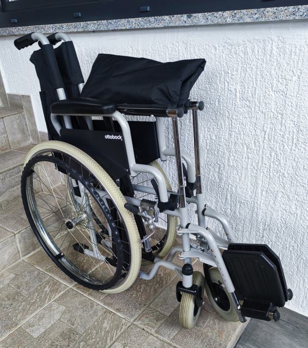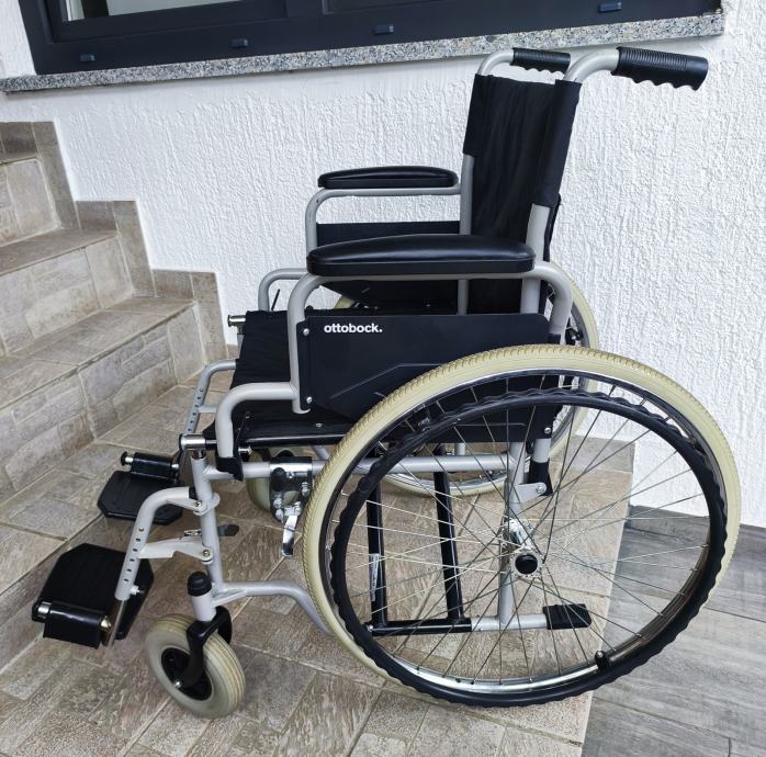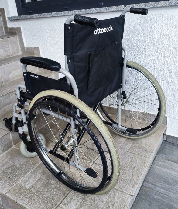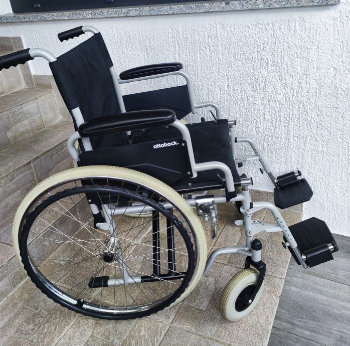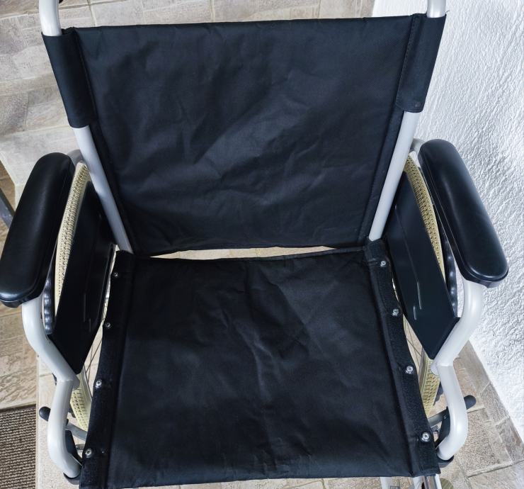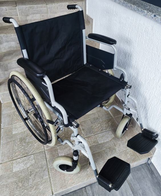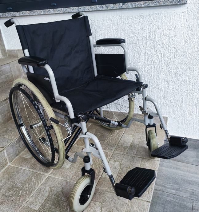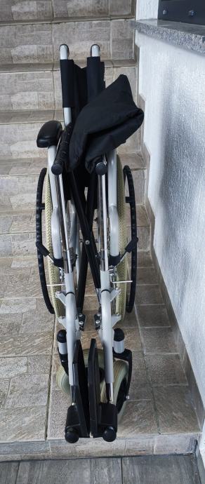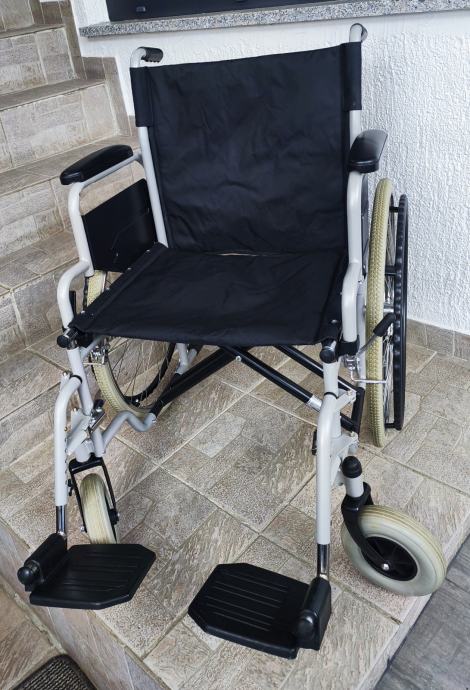Invalidska kolica sa slika gotovo ne korištena stanje odlično kao novo vidljivo na slikama. Kolica su lako sklopova, širina sjedala 51 cm, ukupna širina 68 cm, nosivost do 100 kg, otklon bočnih stranica, skidanje zadnjih kotača jednim klikom, kočnice, pune gume......