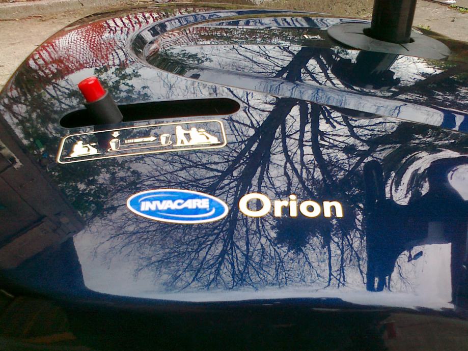 Invalidska kolica- skuter ORION Njemački,pogodan za starije islabo pokretne osobe.Elektronsko upravljanje ,maksimalna brzina je 10km/h,a vožnja je vrlo udobna jer ima amortizere i veoma udobno sjedište kao kod avtomobila-podesivo napred-nazad,naslon isto i okreče se za 360° Nosivost je 150 kg.Skuterom se može upravljati jednom rukom,bez upotrebe noga jer sam koči-smanjuje brzinu nizbrdo ili kod skretanja,pa je tako i zaštićen od prevrtanja. Uz skuter je i avtomatski punilac koji sam izračuna vreme punjenja a troškovi su zanemarljivi.Skuter ima ugradjene GEL akumulatore 2x 50Ah nove generacije bez održavanja, pa ga možete puniti u dnevnoj sobi jer nema nikakvog mirisa kiseline. Kormilo je podesivo, podesivi su i nasloni za ruke. Može se voziti u prtljažniku većine karavan automobila. Skuter nije potrebno registrovati,ne treba vam ni vozačka dozvola,u saobračaju se tretira kao bicikl.Zaštiten je od vlage i vode,kiša mu ne može štetiti jer su svi elektronski djelovi i akumulatori ispod pokrova sjedišta