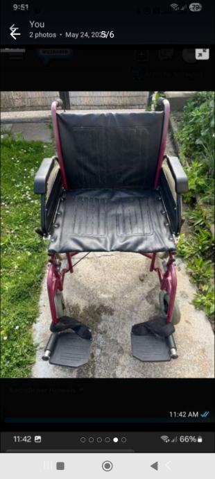 Prodajem sklopiva invalidska kolica B&B sa širinom sjedišta 55cm do 170kg nosivosti.