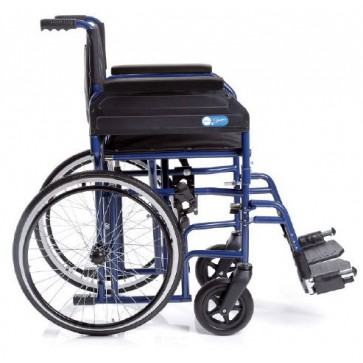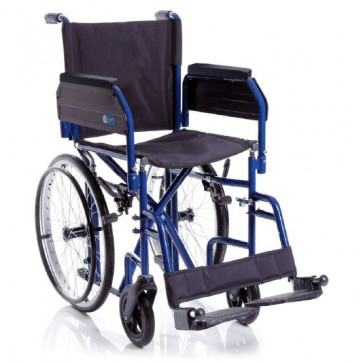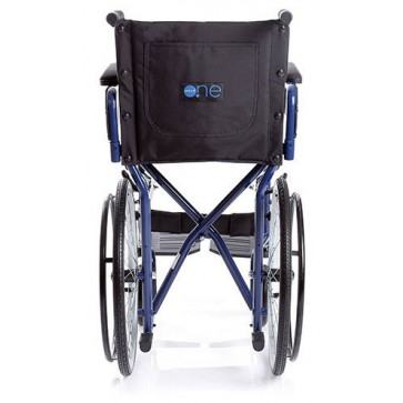 Sklopiva invalidska kolica sa okvirom od obojenog SINGOLA čelika, sjedalo i leđa u crnom podstavljenom i ispranom najlonu, džep dokumenata na stražnjoj strani. Stražnji kotači bez zračnice u PU (Ø 50 cm) s aluminijskim obručima za guranje. Kotači su postavljeni ispod sjedala kako bi se smanjila bočna masa i pojednostavio prolazak kroz uske prolaze. Prednji kotači u PU (Ø 18 cm) s plastičnom vilicom. Podnožje za noge se može podesiti; podesivo po duljini s crnom plastičnom podlogom za nogu i naramenicama.