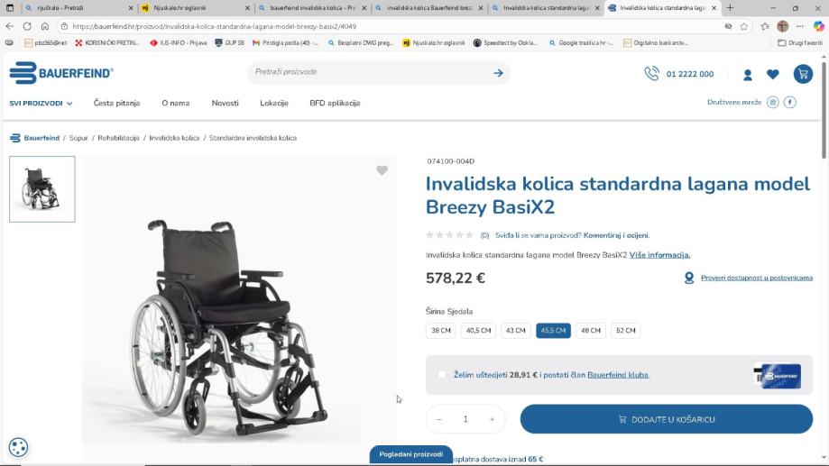 Prodajem potpuno nova Breezy invalidska kolica. Kupljena u Bauerfeind-u u Slavonskom Brodu plaćeno 578,22 eura, no na kraju mi ipak nisu bila potrebna. Uz njih ide i jastuk za udobnije sjedenje, također potpuno nov i zapakiran. Ni kolica ni jastuk nisu nikad korišteni.