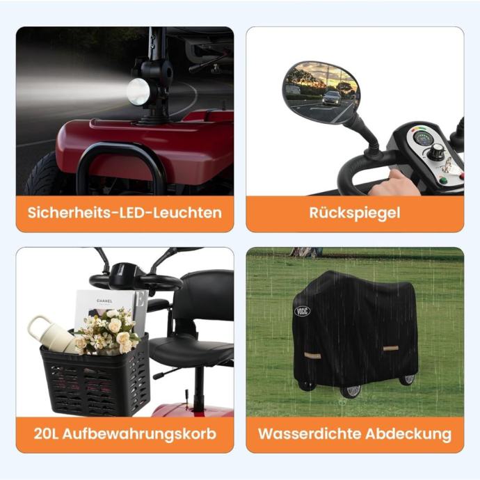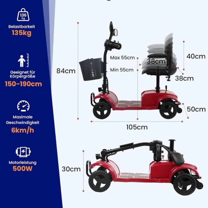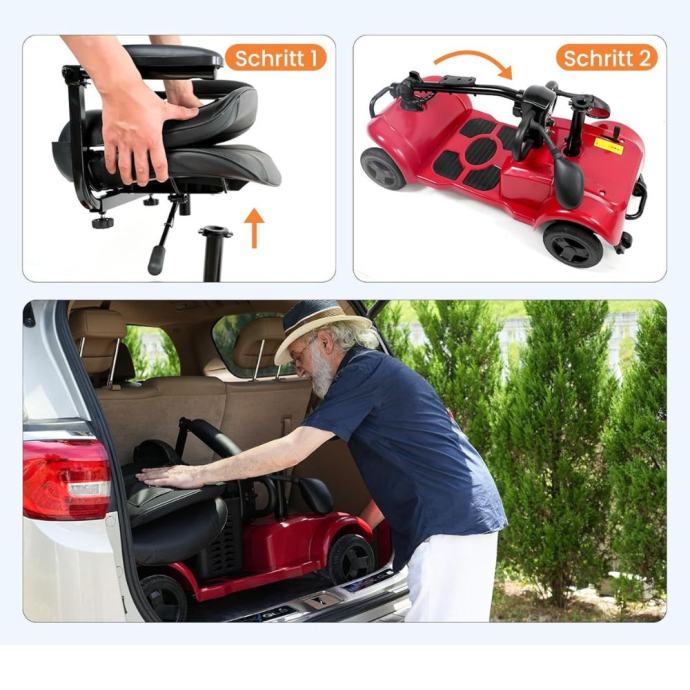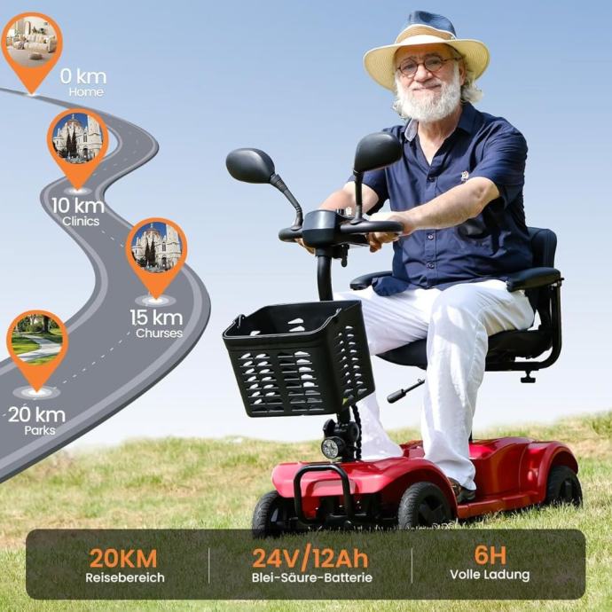 Ovaj romobil je savršen za starije osobe koje žele neovisnost, udobnost i sigurnost. Njegov sklopivi dizajn omogućava jednostavno skladištenje i transport, dok snažan motor i dug domet čine ga idealnim za svakodnevnu uporabu. Stabilnost, udobnost i dodatne sigurnosne značajke čine ga pouzdanim rješenjem za sve terene.