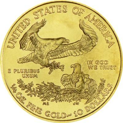American Liberty, zlatna kovanica od 1/4 unce (7,77 čistog zlata). Izrađena u čistoći zlata .916 (22K).