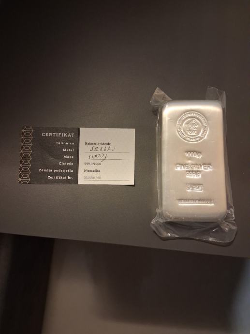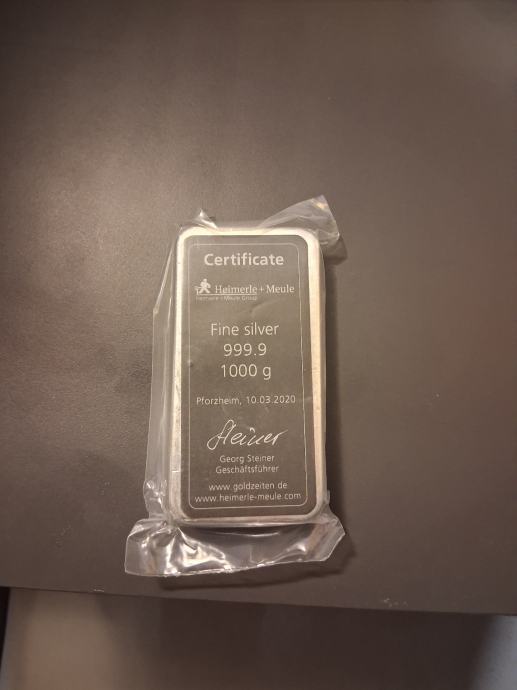 Visokokvalitetna srebrna poluga od 1kg najstarije njemačke talionice Heimerle+Meule.