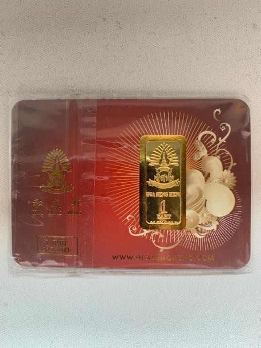 Prodajem zlatnu polugu od jednog tajlandskog bahta u horoskopskom znaku koze,težine 15,24g,čiste težine 14,70g zlata