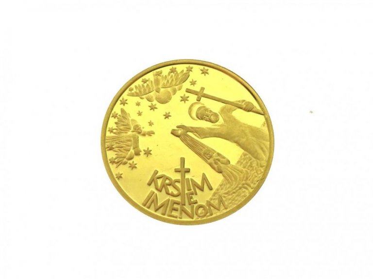 Lice zlatnika: Sv. Ivan Krstitelj krsti dijete u rijeci Jordan.