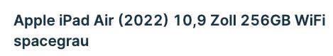 Apple iPad Air 2022 WiFi 256GB 500EUR