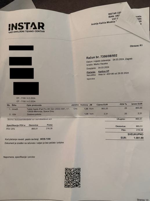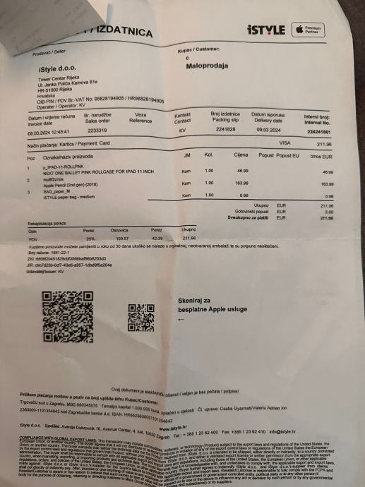 Kupljeno 04.03.2024.godine u Instaru i Istyle-u za 1293,85€