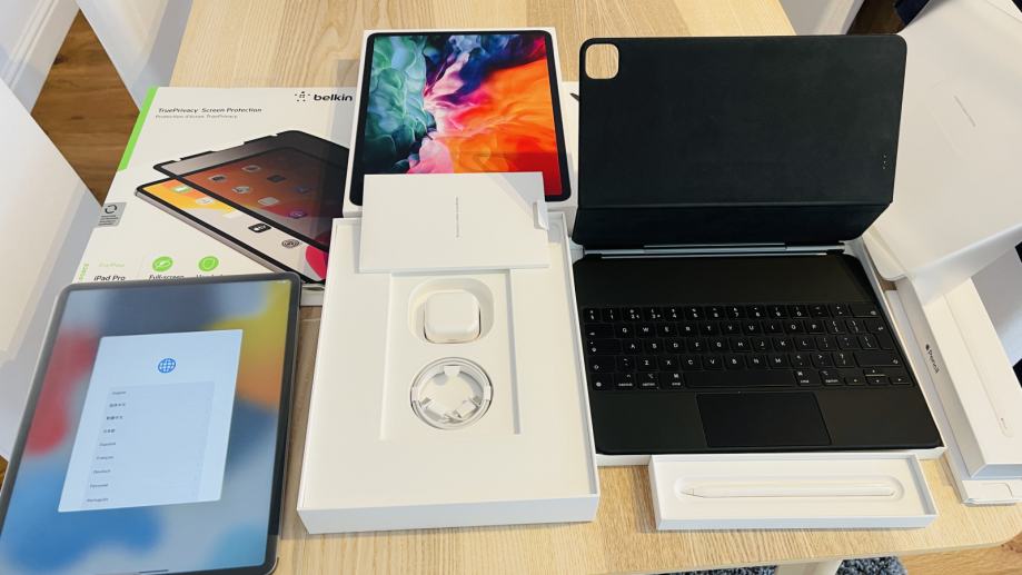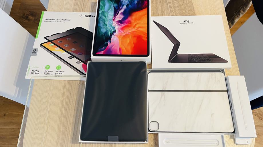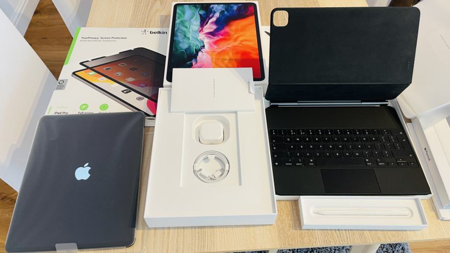 Kao nov bez ikakvih tragova ili gresaka nikad nije bio koristen te je jos neregistriran. Magic Keyboard od prvog dana u zastitnoj foliji koja se moze lako i bez traga ukloniti (D-brand). IPad je nekoristen te je u novom stanju. Uz njega dolazi Apple Care+ koji vrjedi do Rujna 2022. Te original kutija za sve, punjac (nekoristen), kabel. Plus dodatna oprema (zastititna maska, zastitna folija za ekran koja se moze micati).