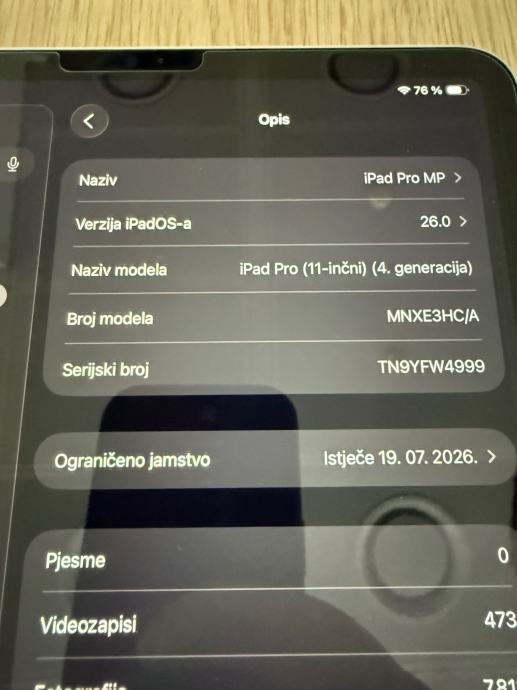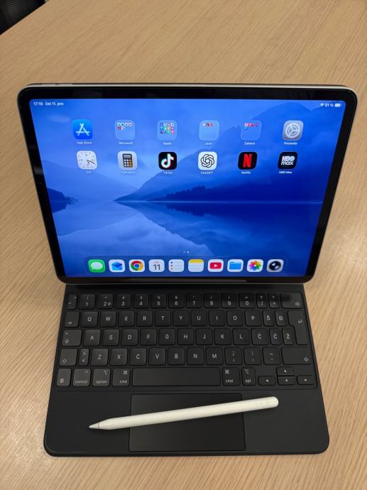 Prodajem rabljeni iPad Pro 11" četvrte generacije s 128 GB memorije i pod jamstvom, uz koji dolaze Apple Magic Keyboard i Apple Pencil.