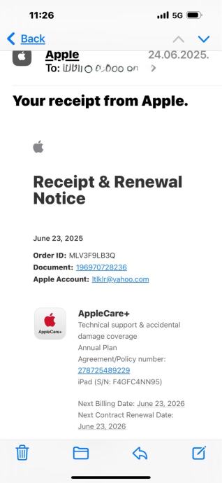 Račun i jamstvo od Applea. Može i preko računa s R1.