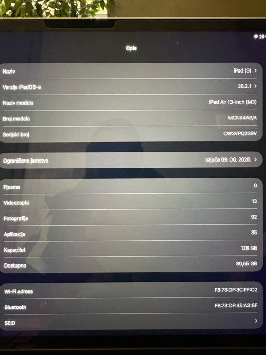 iPad air M3 chip, 13" ekran, top stanje, kao nov, rijetko korišten. Baterija na 100%