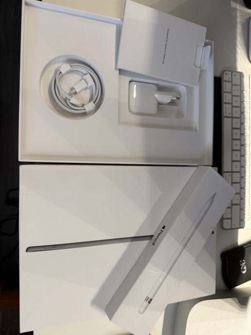Apple iPad Air 3 + Apple Pencil + kabel za punjenje + adapter za punjenje + kutija za tablet + kutija za apple pencil + 2x smart folio + kutije + papiri + racun