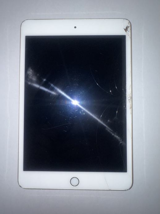 iPad Mini 4 16 GB rose gold, bez SIM kartice: razbijeno staklo ekrana ali sve funkcionalno i radi, bez punjača. Cijena 100€ fiksno.