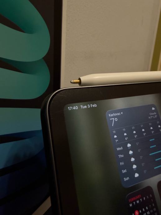 apple pencil nažalost nema vrh jer je pukao ali funkcionira bez problema i vidljivo je na slici da se puni i radi,