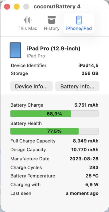 - Battery Health: 78%