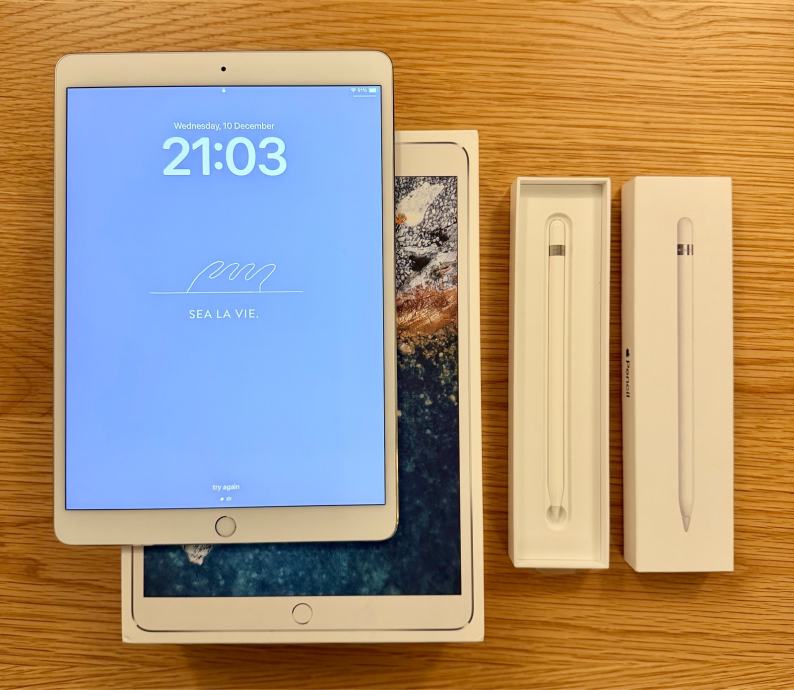 Prodajem iPad Pro 10.5-inch s Wi-Fi povezivošću, zajedno s originalnim Apple Pencilom prve generacije. Tablet je u odličnom funkcionalnom stanju, a Apple Pencil omogućuje precizno pisanje i crtanje.