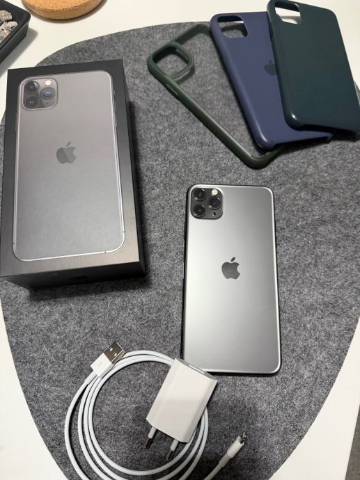 Prodajem Apple iPhone 11 Pro Max s 64GB interne memorije u Space Gray boji. Uređaj dolazi s originalnom kutijom, punjačem i kabelom, a uz njega idu i tri maskica.