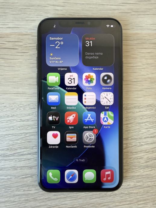 Prodajem navedeni mobitel, korišten redovno. Zdravlje baterije je 72%. Na ekranu je crna mrlja gore lijevo te ne smeta korištenju (normalno prima dodir taj dio i ne širi se).