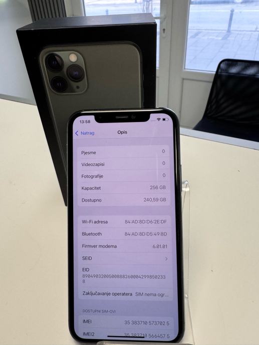 Prodajem iphone 11 pro 256gb u savrsenom stanju bez ostecenja, uz njega ide kutija punjac i kabel, baterija je nova kapacitet 100% sve je u potpunosti ispravno i sve radi, moguca provjera prije kupnje, zamjene iskljucene!