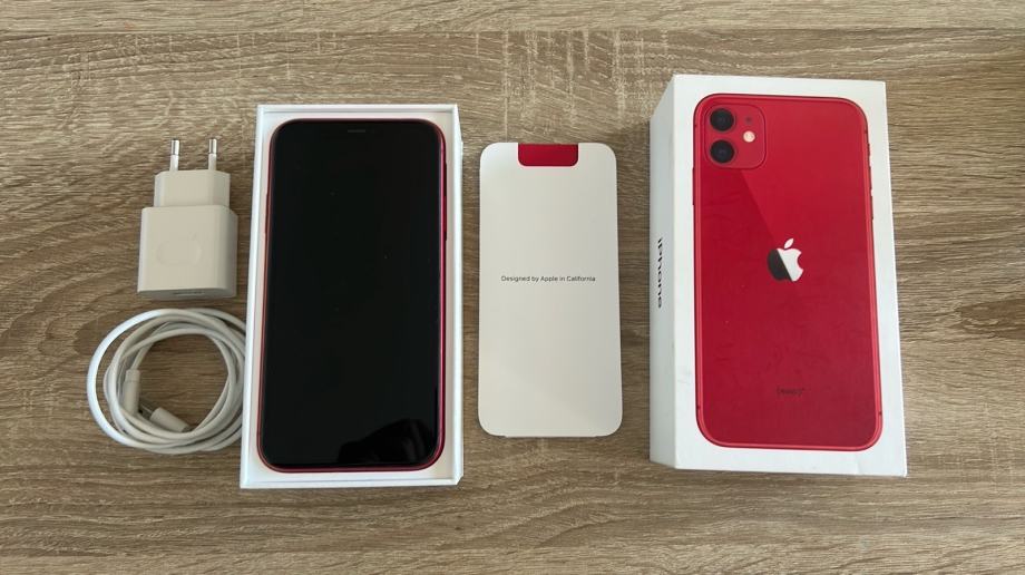 Prodajem rabljeni Apple iPhone 11 s 128GB memorije u crvenoj boji (PRODUCT)RED. Uz uređaj dolazi originalna kutija, punjač, kabel i maskica. Mobitel je očuvan, sa manjim tragovima korištenja. Osobno preuzimanje u Rijeci.