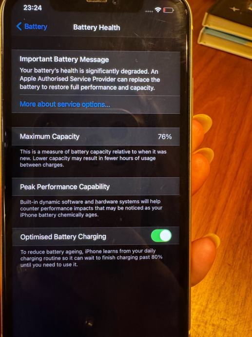 Kapacitet baterije 76%.