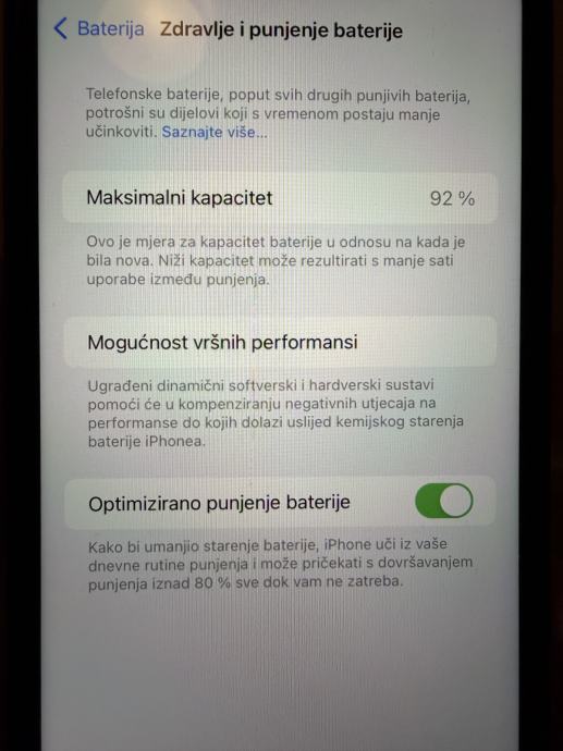 Iphone 1164 GB, dolazi u kutiji s pripadajucim priborom. Mobitel je u odlicnom stanju, zdravlje baterije 92%, koristen kao poslovni mobitel vecinom samo za pregledavanje mejlova. Ima nekoliko manjih ogrebotina od koristenja sto je vidljivo na slikama. Nisam zainteresiran za zamjene.