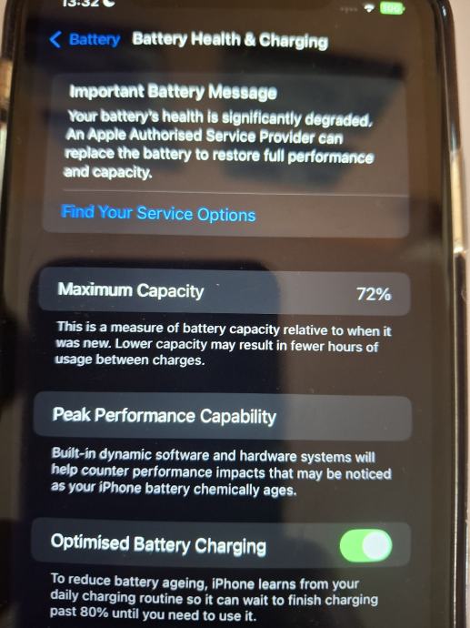 Status baterije je na 72% u odnosu na kad je bio nov.