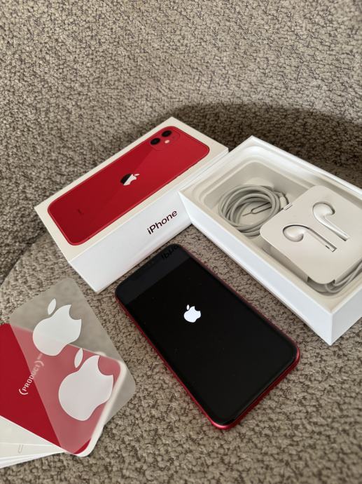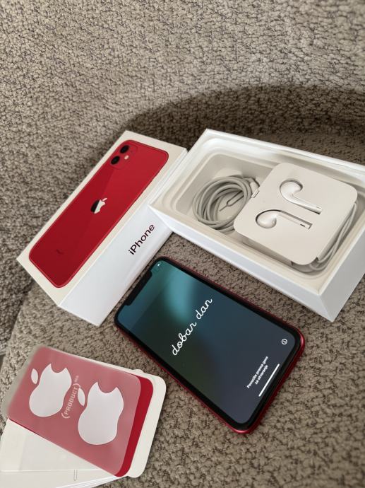 iPhone 11, crvene boje, 128GB, nije nigdje oštećen, 1 vlasnik. Punjac i slusalice (nekoristene) ukljuceni.