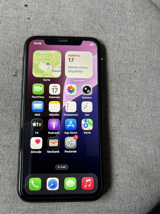 iPhone 11 - u odličnom stanju - vračen na tvornićke postavke - nema cloud - radi face-id - baterija je ispod 80 posto ali najnormalnije drži cijeli dan sa normalnim korištenjem - maskica , punjač kabel - 130 e - ostalo upit ako vas još što zanima - lp