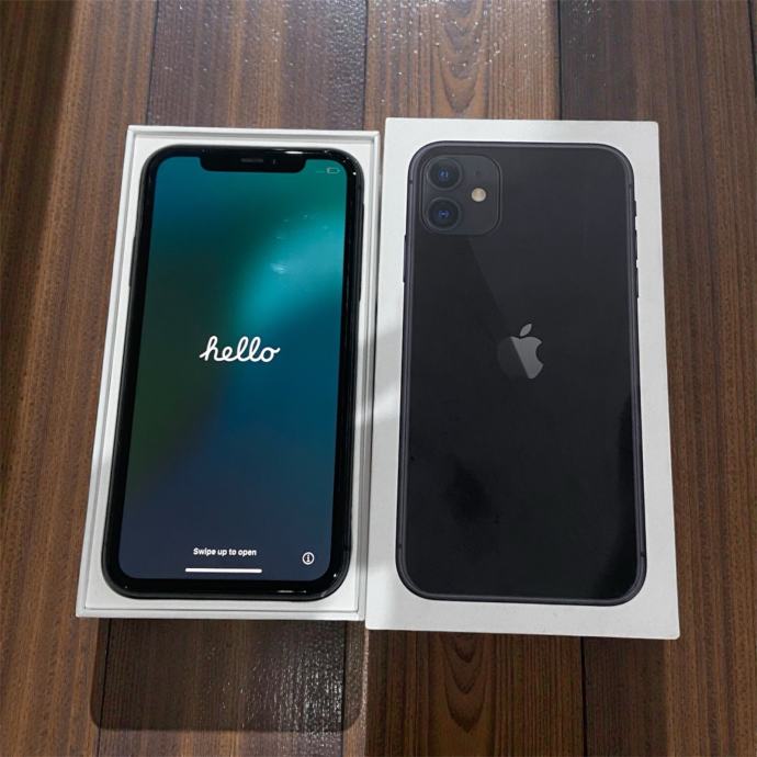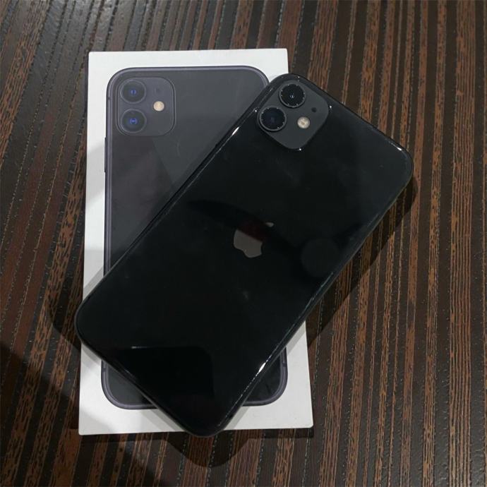 Prodajem rabljeni Apple iPhone 11 u crnoj boji. Dual kamera sustav na stražnjoj strani je neoštećen, a ekran je uredan.