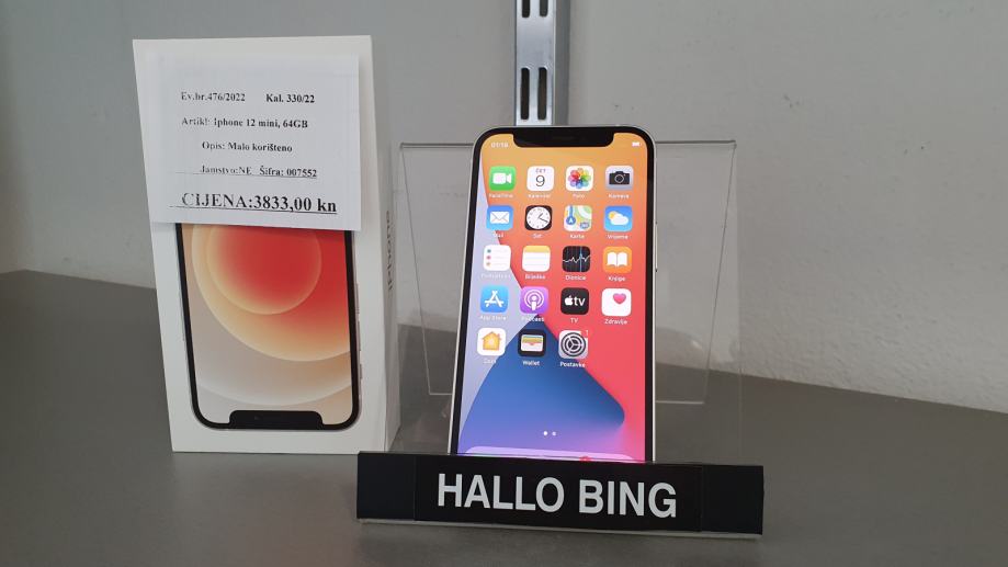 Iphone 12 mini, 64 gb, kupljen 16.02.2021. Mint stanje. Kabel punjaca nekoristen. Baterija 84%.