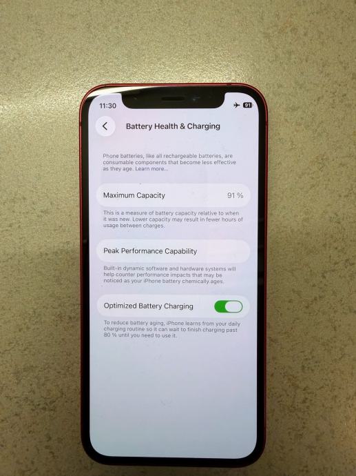 Prodajem iPhone 12 mini crvene boje s 128GB memorije i baterijom kapaciteta 91%. Uređaj je u odličnom stanju, bez oštećenja i potpuno funkcionalan. Uređaj je bio u futroli sa zaštitnim staklom od prvog dana. Baterija je većinom bila punjena do 80%.
