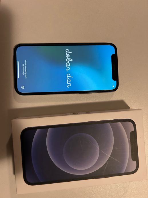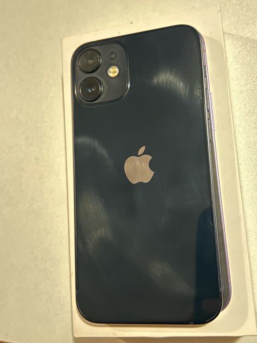 Iphone 12 mini, 128GB, crna boja. Zdravlje baterije 75%, stanje vidljivo na slikama. Mobitel nikada nije pao, nego je ekran postrugan prvi dan u torbici i od tada je na ekranu zastitno staklo i maskica na mobitelu. Uz mobitel dolaze kutija i usb kabel za punjenje, bez adaptera.
