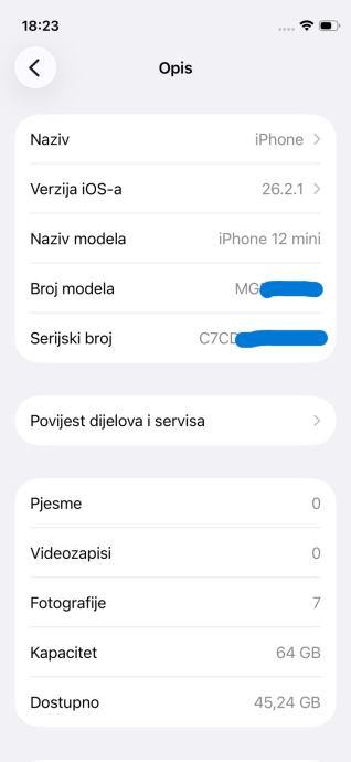Napomena: Baterija u postavkama prikazuje poruku o nepoznatom dijelu, ali to ne smeta za rad.